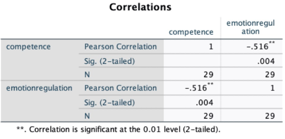 Table 1 Correlation between competence and the use of emotion regulation
